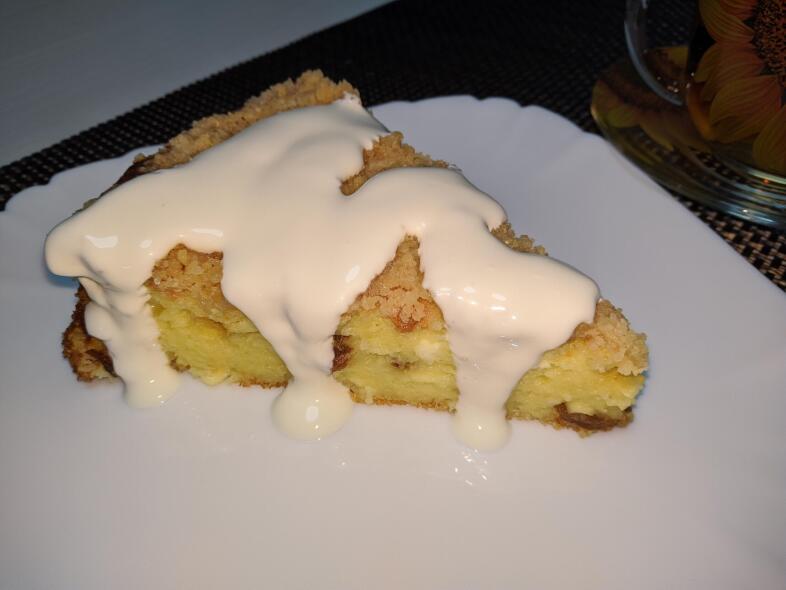 Этот рецепт универсален и подходит как для семейного завтрака, так и для праздничного чаепития. Запеканка получается достаточно сладкой, чтобы считаться десертом, но при этом не приторной. Штрейзель — немецкая посыпка из масла, муки и сахара — добавляет европейский акцент и создает аппетитную золотистую корочку.