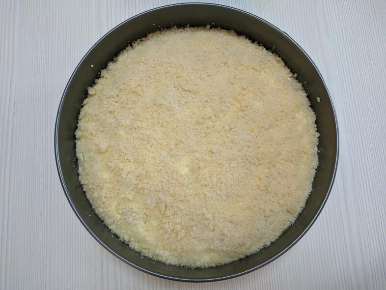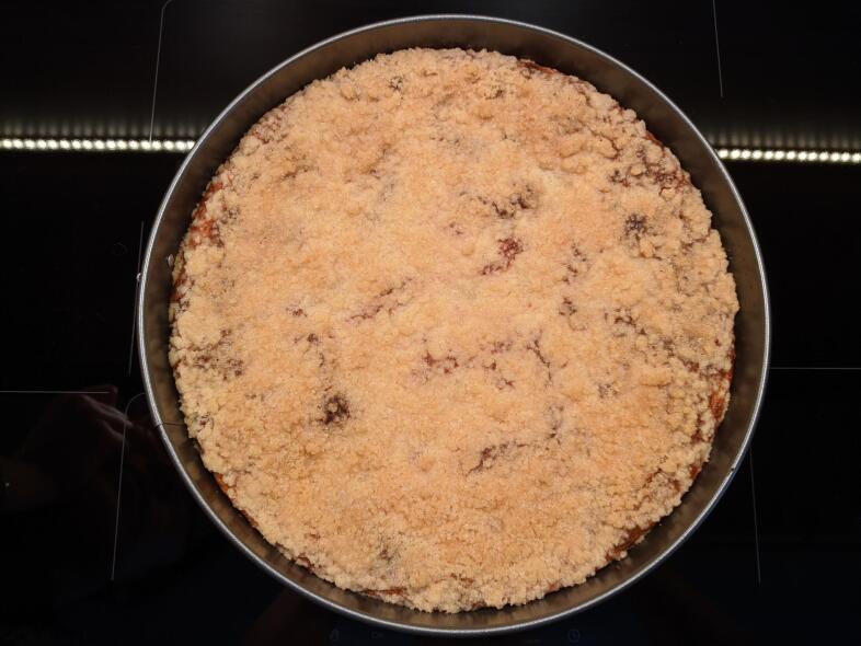 Поставить в разогретую духовку на средний уровень. Выпекать 60 минут до золотистого цвета штрейзеля и легкого отставания краев от стенок формы. Готовность проверять деревянной палочкой — она должна выходить сухой из центра запеканки.